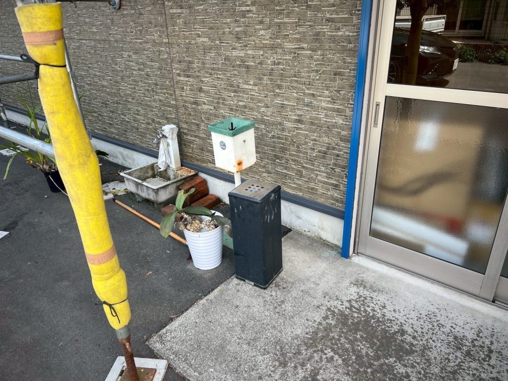 また、入口脇の灰皿もサービスで塗装し、高級感ある雰囲気に一新。ちょっとした部分までこだわり抜いた塗装で、完成度の高い外観へと生まれ変わりました。